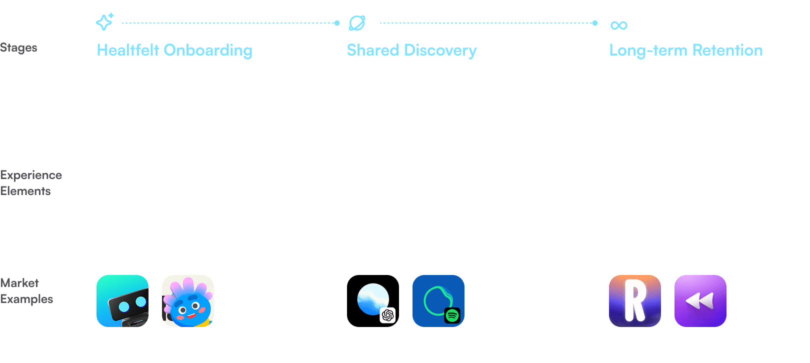 With extensive benchmarking on current AI experiences, I identified a core mental model of how people can build trust and connection with an AI-native screen, and gradually shift their perception: from curiosity, to collaboration, to companionship.