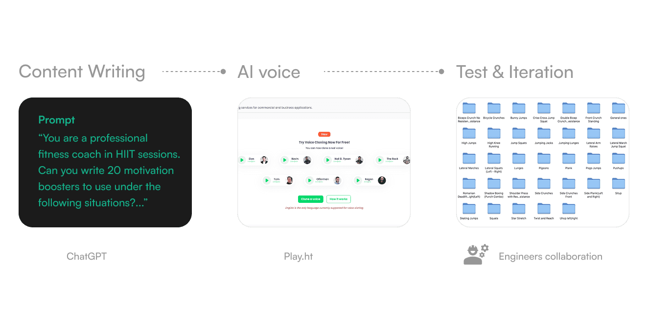 Voice guidance was critical for motivation. I used an AI workflow to create a logic-based script library for the engineers to pull from.