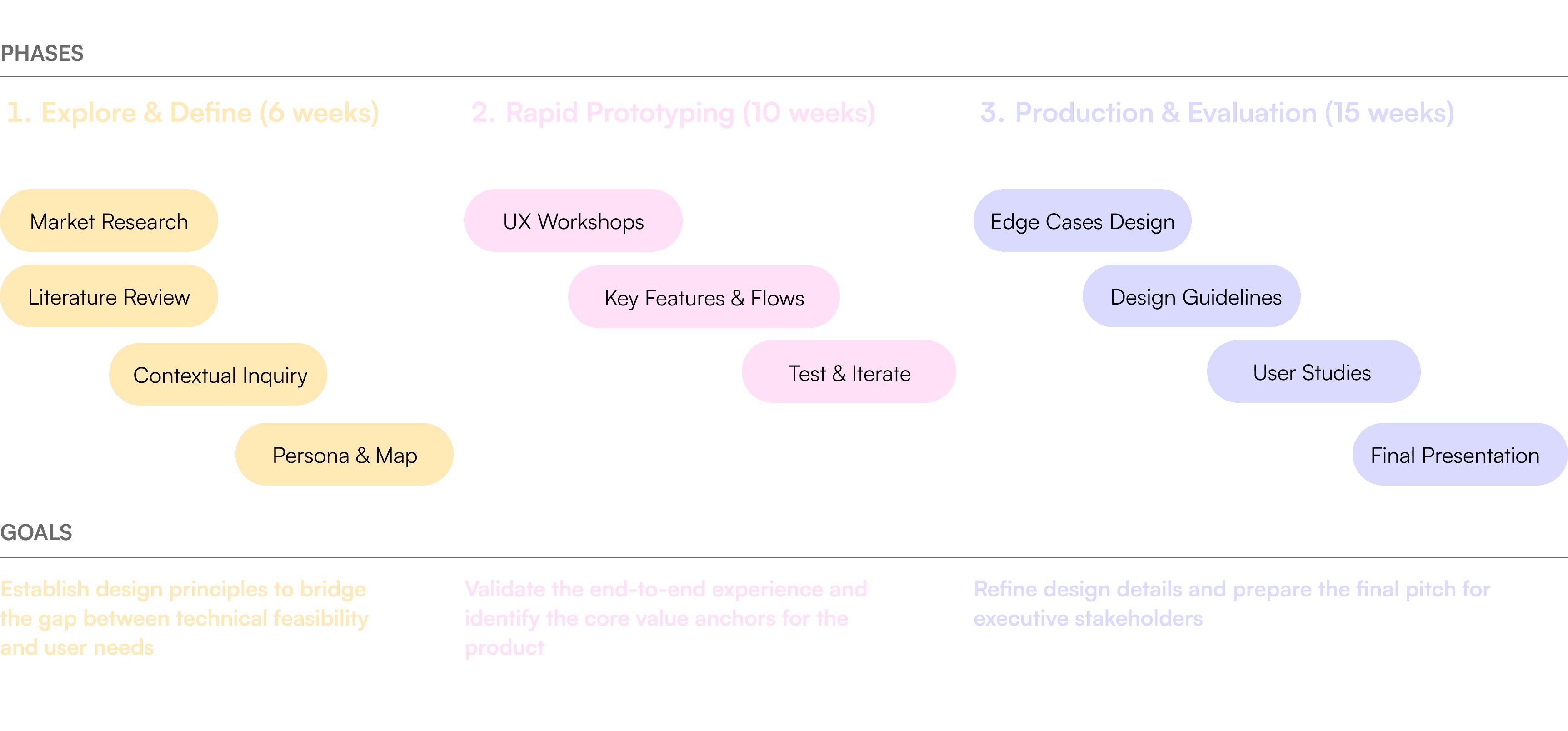 Three phases across 7 months, from research to executive pitch