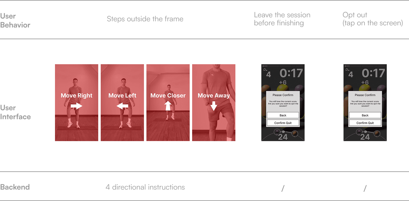 Contextual UI feedback that guides users when they drift out of frame or accidentally tapping during exercise.